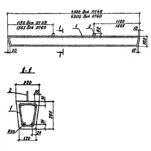 Марки приставок обозначаются буквами ПТ (приставка трапецеидальная) и двумя числами (через тире),  из которых первое означает величину нормируемого расчетного изгибающего момента в направлении, перпендикулярном к оси линии связи и электропередачи (в тонно-метрах) на уровне заделки приставки в грунт, а второе – длину приставки в метрах.