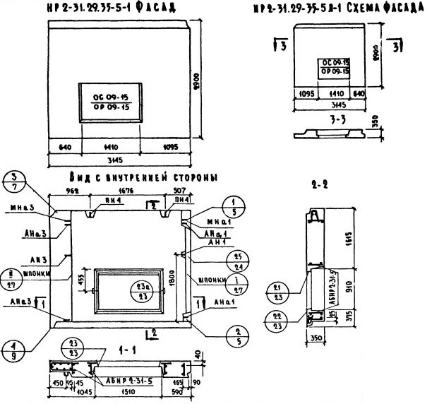 НР2-31.29.35-5-1   Наружная стеновая панель рядовая по Серии 1.132-1.